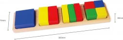Træ-matematiske former giver børn en fantastisk måde at lære at genkende farver og former gennem leg. Dette produkt understøtter udviklingen af finmotorik og sorteringsfærdigheder.