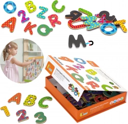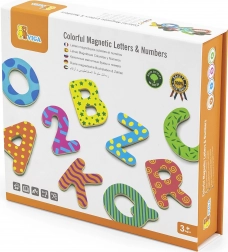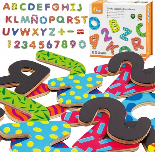 Opdag en sjov måde at lære børn alfabetet og at tælle på: det magnetiske sæt med bogstaver og tal fra VIGA indeholder 77 dele til at danne ord, sætninger og simple regnestykker. De farverige motiver fremmer legende læring, udvikler finmotorik og kreativitet. Delene hæfter nemt på magnetiske overflader (tavler, køleskabe) og er lavet af lakeret træ med ugiftige farver.