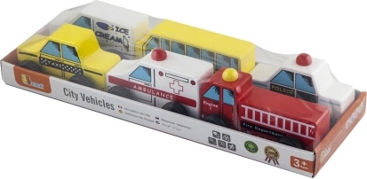 Sættet med træbiler er et ideelt tilbehør til børneværelset. Det indeholder en skolebus, en politibil, en isbil, en taxa, en brandbil og en ambulance. Hver bil byder på specifikke elementer, der understøtter læring og udvikling af motoriske færdigheder.
