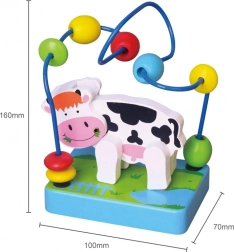 Trælabyrinten med ko fanger børns opmærksomhed med sit farverige design og den søde lille ko.