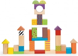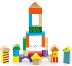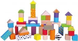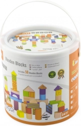 Dette alsidige sæt træklodser giver børn uendelige muligheder for at bygge tårne, broer og små huse. Delene ligger godt i hånden, har glatte kanter og er farvelakerede for en attraktiv og sikker leg. Den praktiske spand med hank gør det nemt at opbevare og transportere.