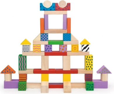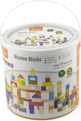 Dette tidløse sæt træklodser giver børn timevis af meningsfuld leg. Med 100 farverige dele i forskellige former kan de bygge tårne, huse og hele små byer, mens de udvikler øje–hånd-koordination, logisk tænkning og tålmodighed.