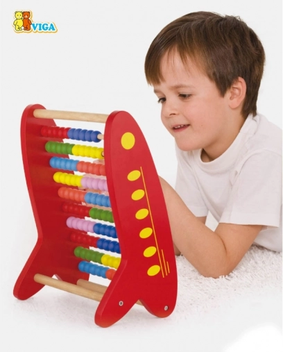 Børn kan nemt øve grundlæggende aritmetik med 100 perler fordelt på 10 rækker. De farvede rækker understøtter farvegenkendelse, mønsterdannelse samt de første plus- og minusopgaver.