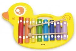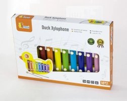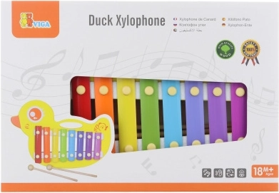 Denne søde børnexylofon i andeform imponerer med livlige farver og et ergonomisk design med håndtag, så den er nem at bære. De farvede metalplader skaber klare toner, der motiverer børn til at udforske rytme og deres første melodier.