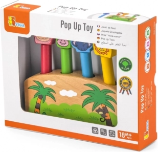 Dette træ-pop-up spil med dyr er et ideelt første motoriklegetøj. Børn sætter dyrepindene i hullerne, og når fjederen trykkes ned, springer figurerne sjovt op. Den robuste træbase med jungletema og de venlige dyr indbyder til gentagen leg og udvikler både tålmodighed og koncentration.