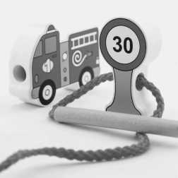 12 dele og en snor med træpind gør det muligt at snøre, sortere og skabe historier om bytrafik.