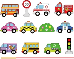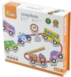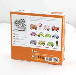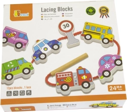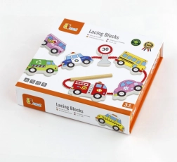 Dette kvalitets snøresæt med køretøjer i træ giver børn glæden ved at lære gennem leg. Sættet indeholder 12 dobbeltsidigt malede brikker med biler, bus, ambulance, brandbil og trafikskilte samt en solid snor med pind for nem gennemføring. Børn kan skabe deres egne historier om bytrafik, rejser og trafiksikkerhed.