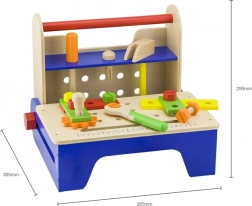 Opdag den kreative byggeverdén med dette kvalitets træværktøjssæt til børn fra 3 år. I den praktiske transportkasse, som nemt kan forvandles til en arbejdsbænk, finder du alt, hvad små gør-det-selv-helte behøver – skruetrækker, hammer, nøgle, skruer, møtrikker og plader. Legen udvikler finmotorik, logisk tænkning og kreativitet og giver timevis af skærmfri underholdning.