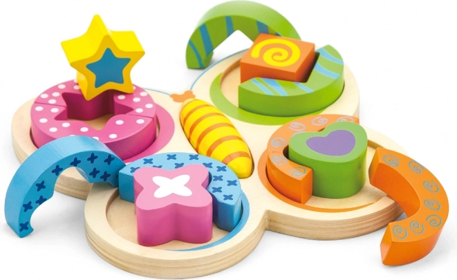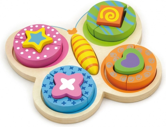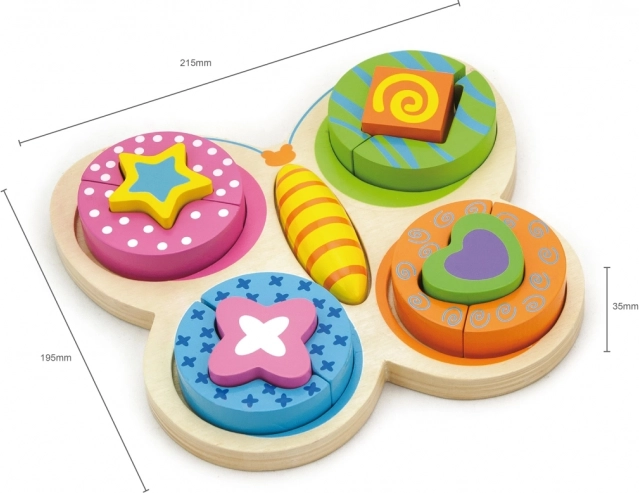 Det søde træpuslespil formet som en sommerfugl giver børn fra 2 år timevis af leg og læring. Takket være klare farver, store, sikre brikker og fræsede kanter bliver delene liggende på plads. Legetøjet understøtter finmotorik, hånd-øje-koordination og kreativitet.