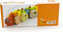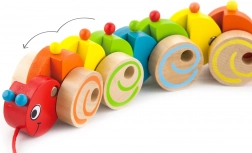 Denne glade træ-caterpillar er det ideelle legetøj til småbørn. De farverige segmenter bevæger sig og roterer under kørsel, hvilket motiverer til gang og aktiv leg. Den robuste konstruktion og de glatte kanter sikrer sikker brug i små børnehænder.