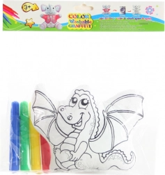 Opdag en kreativ verden med tegne-dragen, der styrker fantasi og finmotorik. Takket være det særlige polyester-materiale kan dyret nemt vaskes når som helst og farves igen – sjov uden ende og uden rod.