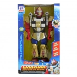 Denne plastrobot på batterier er en ideel legetøj til børn fra 3 år. Lys- og lydeffekter fanger barnets opmærksomhed og stimulerer fantasien. Robotten kan gå, og dens interaktive bevægelser omfatter rotation samt bevægelse med sværd og skjold.