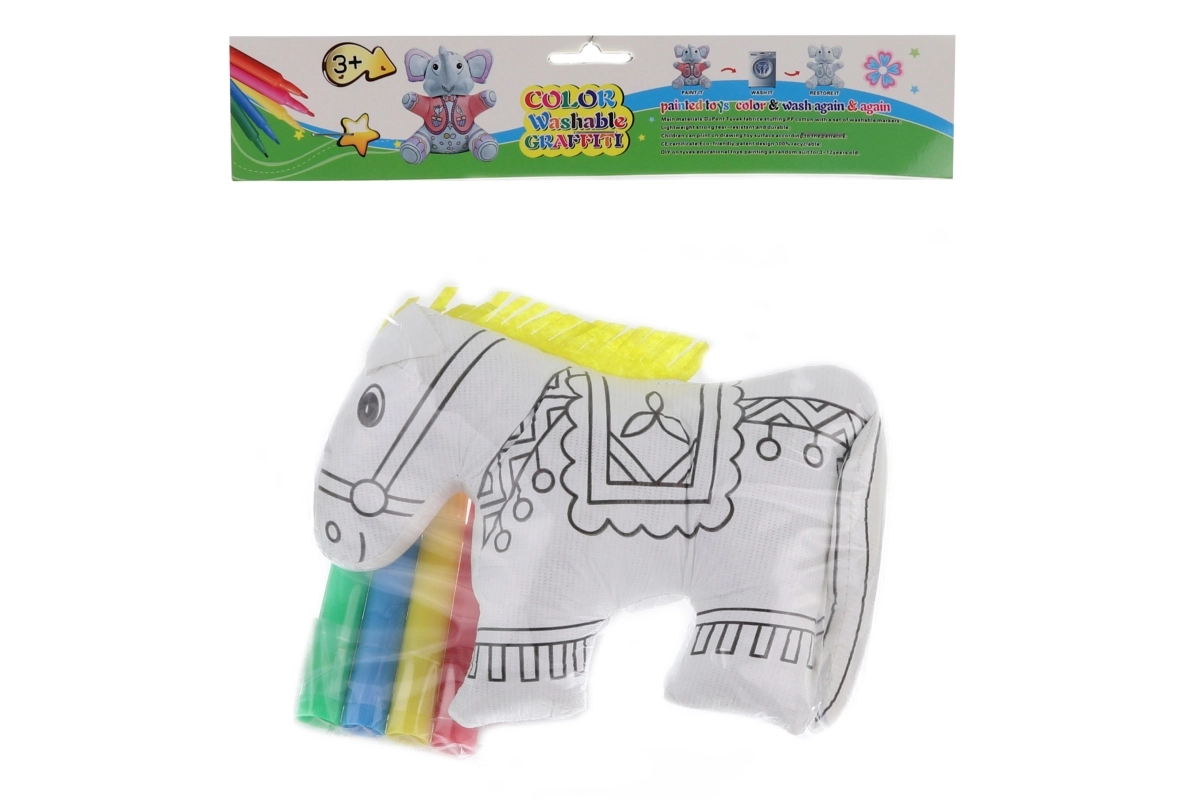 Det vaskbare dyr formet som en hest er et fremragende valg til små kunstnere. Takket være det særlige polyester-materiale kan hesten let vaskes og farvelægges igen, så den kreative leg aldrig stopper. Sættet indeholder alt, hvad børn behøver for at komme i gang med det samme.