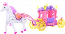 Hest med dukkevogn er et magisk legetøj til små prinsesser. Dette interaktive sæt med en hest, der kan gå og spille lyd, når der indsættes batterier, og en lysende vogn vil begejstre alle børn over 3 år.