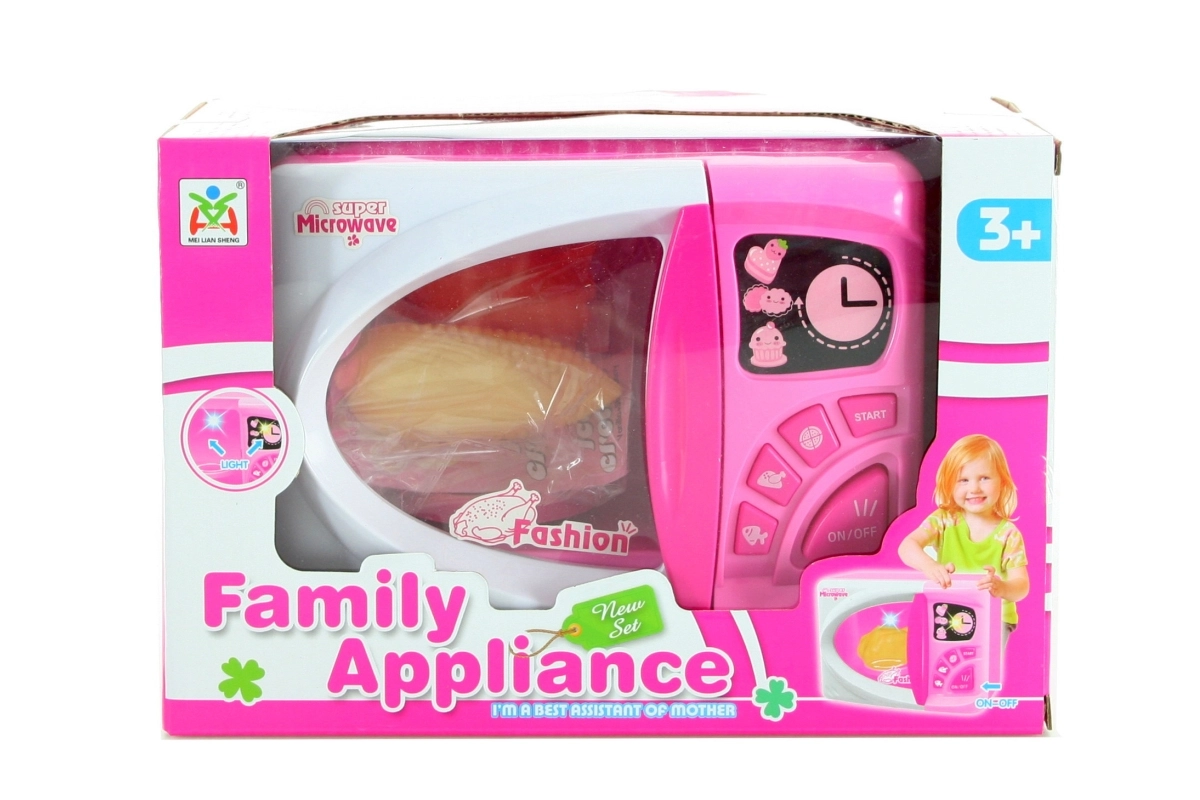 Denne mikrobølgeovn i plast giver børn en autentisk madlavningsoplevelse. Når den tændes, afgiver den realistiske lyde, indersiden lyser som ved opvarmning, og tallerkenen roterer, så legen føles både ægte og sjov.