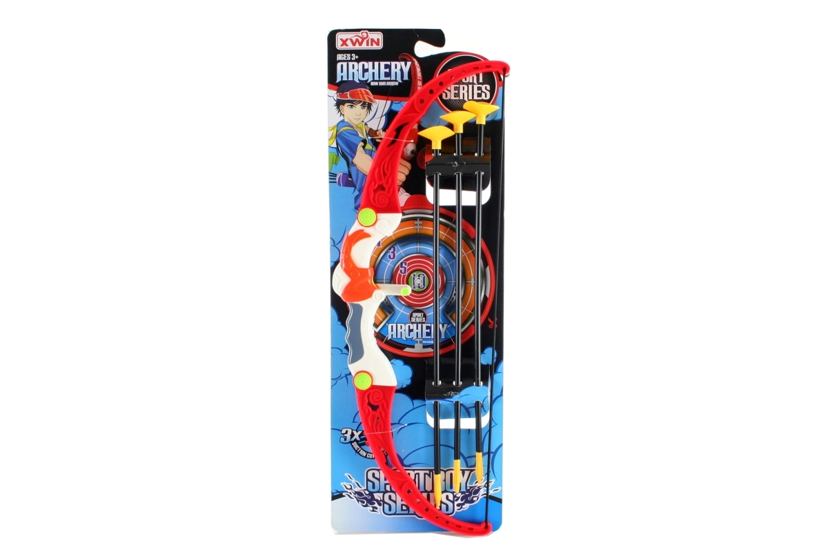 Denne lette plastikbue er et fremragende valg til den første introduktion til bueskydning. Takket være de tre pile med sugekopper er skydningen sikker og egnet til både hjemme- og udendørsleg. Fra det vedlagte kort kan man desuden klippe et mål ud, så børn kan øve præcision og konkurrere med venner.