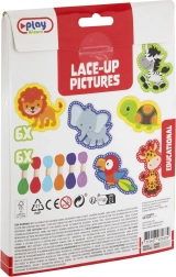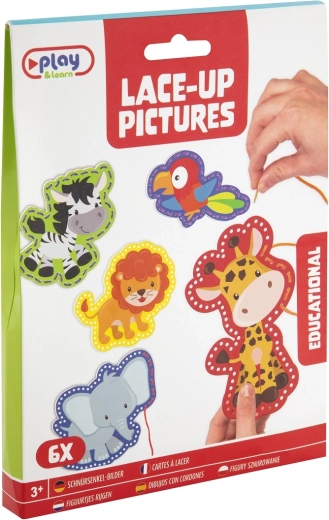 Hvert af de 6 robuste billeder har forprikkede huller for nem gennemtrækning, så aktiviteten også passer til begyndere. Sættet indeholder 6 snore i forskellige farver – vælg et billede, træk snoren igennem og se motivet blive levende.