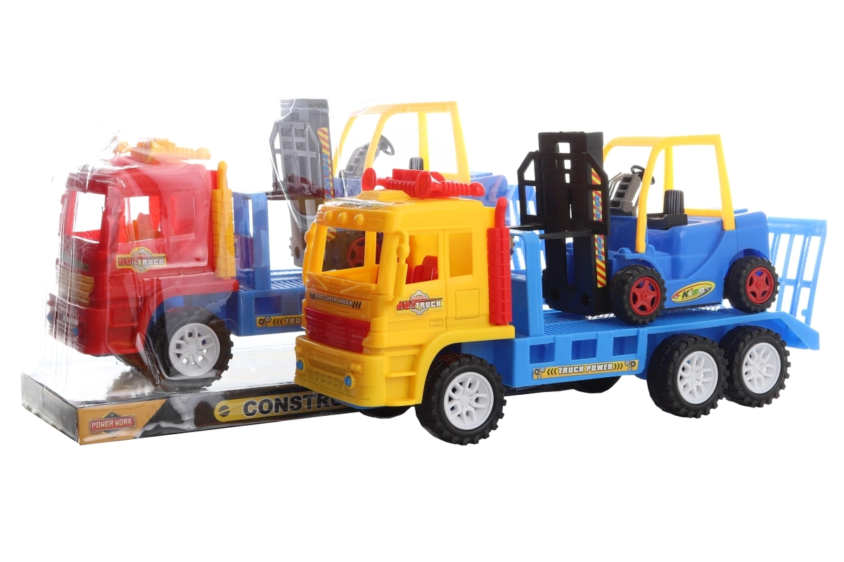 Den plastiske lastbil med løftearm og friktionsmotor er et godt valg for små byggere og chauffører. Efter et kort skub kører den let afsted, og barnet kan ved hjælp af løftearmen “læsse” og “læsse af” godset. Legen udvikler finmotorik, fantasi og koordination.