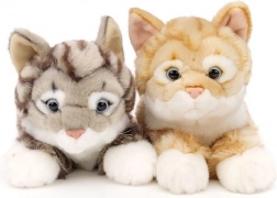 Denne liggende plysset kat giver masser af glæde og komfort til både børn og voksne. Det bløde, luftige materiale er behageligt at røre ved, og den høje kvalitet gør, at du forelsker dig ved første kram. Realistiske detaljer som stribet farvetegning, hvide poter og en sød snude giver katten et autentisk udseende.