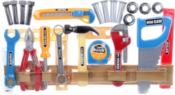 Sættet indeholder sav, tang, hammer, rørtang, skruetrækker, nøgle, kniv og et praktisk bælte til overskuelig opbevaring af værktøj. Legen understøtter udvikling af finmotorik, hånd–øje-koordination og lærer børn selvstændighed og praktisk tænkning.