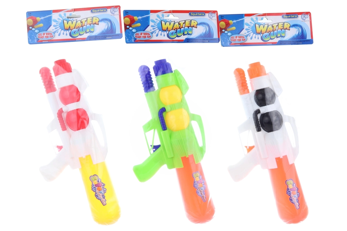 Plast vandpistol med en størrelse på ca. 35 x 17 x 6,5 cm. Pakning ca. 20 x 48 x 6,5 cm. Alder 3+
