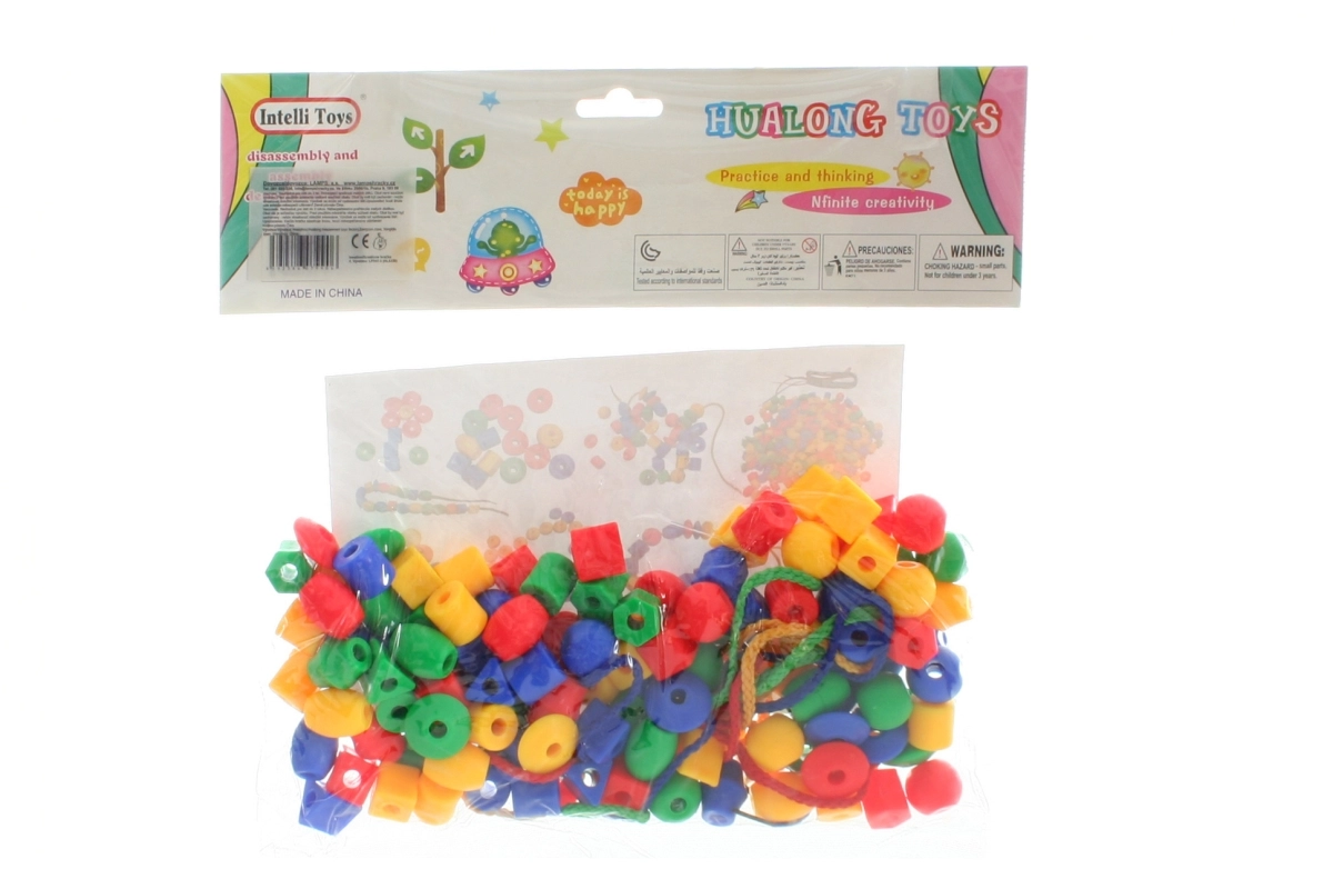 Sættet egner sig både til hjemmekrea og til børnehaver. Takket være de farvede snore er det nemt og sjovt at trække perlerne på. Perlerne er cirka 1 cm, så de ligger godt i små børnehænder.