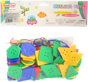 Snøreformer og knapper er ideelle til små børn, der vil forbedre deres finmotoriske færdigheder. Dette legetøj indeholder forskellige former og farver, så børn lærer at genkende former og farver. Sættet indeholder også farvede snore, der gør det nemt for børn at snøre. Dimensionerne på de enkelte former er ideelt designet til små børnehænder.