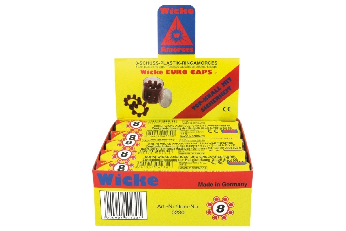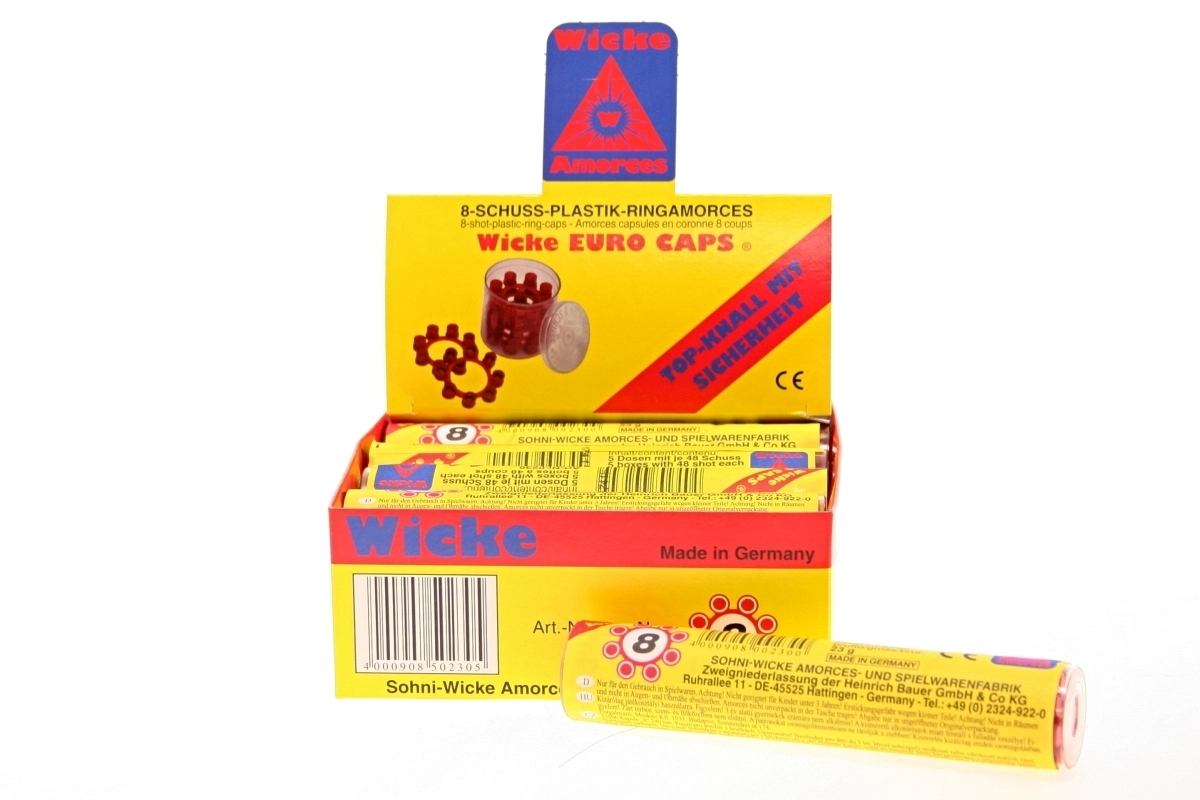 Velegnet til legetøjspistoler med kapsler tilpasset 8-skuds kranse. Nem at bruge og med pålidelig effekt, hvilket gør disse kapsler til et godt valg til lege som politi, eventyrere eller karnevalskostumer.