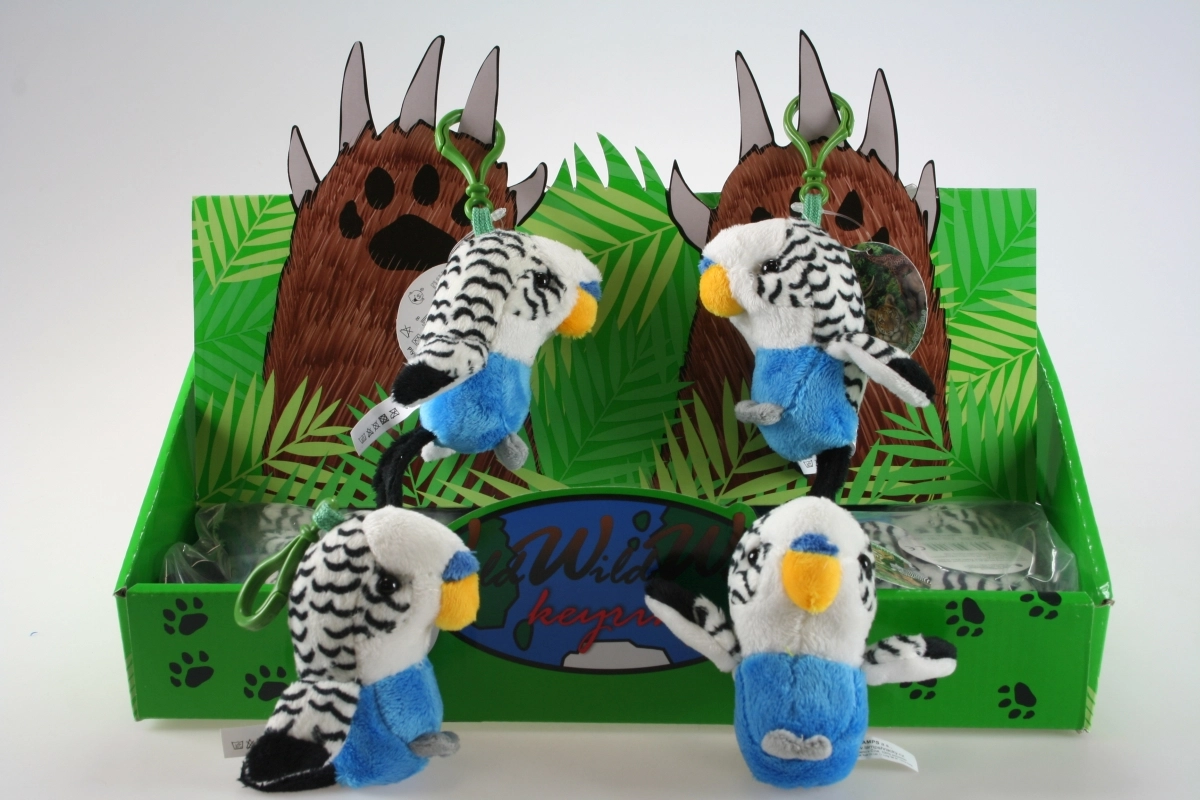 Denne hvide plysbudgie bringer glæde til hvert skridt. Takket være den praktiske ring kan du nemt sætte den på nøgler, skoletaske eller lynlåsen på jakken. Den bløde overflade og den detaljerede udførelse sikrer et behageligt udseende og en dejlig følelse at røre ved.