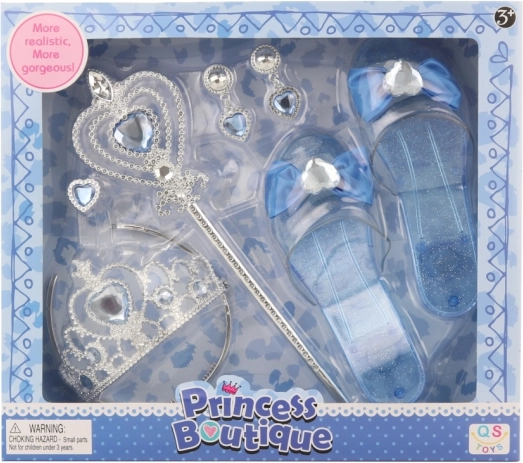 I pakken finder du alt, hvad en rigtig prinsesse behøver: en funklende krone, et matchende septer, elegante sko og et smykkesæt til at fuldende kostumet. Perfekt til fødselsdagsfester, maskerade og hjemmeteater.