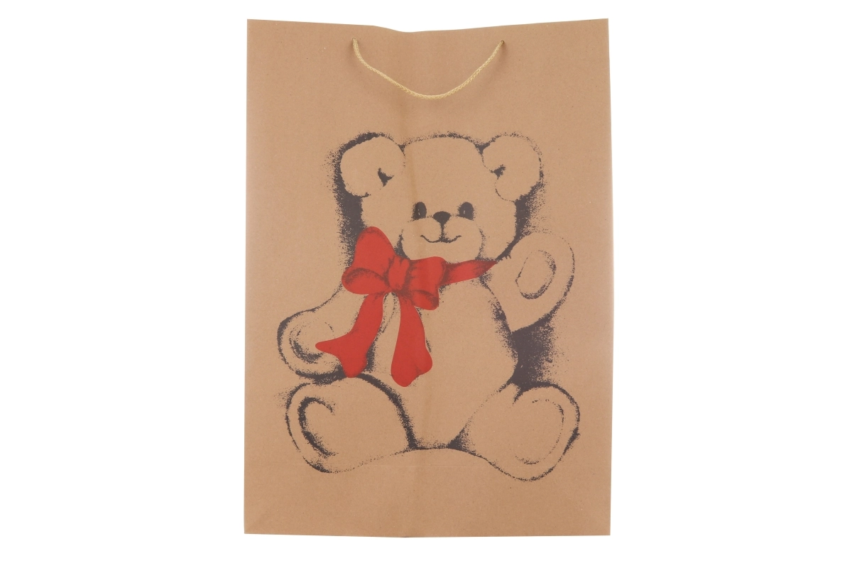 Stilfuld gavepose med bjørnedesign i maxi-størrelse, der glæder ved enhver overrækkelse af en gave. Takket være dimensionerne er den ideel til større pakker og virker repræsentativ. Robust udførelse, dekorativt udseende og rige mål for nem indpakning af gaver.
