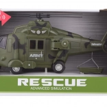 Militær helikopter på batteri med lys og lyd. Helikopteret har en optrækskrog, en roterende rotor og en roterende forlygte. Strømforsyning 3x AG13 (inkluderet i pakken). Helikopterens mål ca. 28 x 14 cm. Pakkens mål ca. 32 x 12 x 19 cm. Alder 3+.