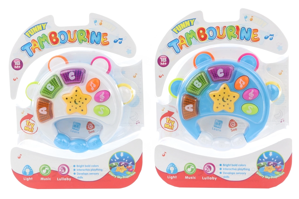 Denne lette og sikre børnetamburin er ideel til den første introduktion til musik. Farverige knapper får lysene til at tænde og starter lydeffekter, som understøtter rytme, høresans og hånd-øje-koordination.