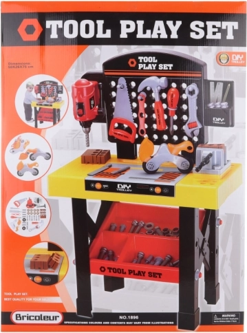 Dette børnearbejdsbord med en højde på ca. 75 cm vil glæde alle små mestre. Den robuste plastkonstruktion og det brede udvalg af værktøj skaber et autentisk værkstedshjørne, som styrker børns fantasi og færdigheder.