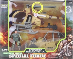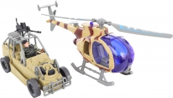 Dette realistiske militærsæt giver børn masser af sjov og plads til fantasi. Når man trykker på knappen, lyser helikopteren og afgiver lyde, hvilket forstærker legeoplevelsen. Sættet inkluderer også en pansret bil og en soldaterfigur til komplette actionscenarier.