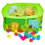 Indhegning med bund og 50 bolde – ikke til vand, med mål ca. 75 cm x 75 cm x 30 cm. Pakken indeholder 50 bolde. Bassinet kan bruges derhjemme på børneværelset, men også udendørs i haven om sommeren. Børn vil have masser af sjov, når de leger. Alder 6 m+.
