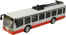 Oplev en detaljeret trolleybus i den klassiske rød-hvid-sorte farvekombination, som du kender fra nogle tjekkiske byer. Modellen er lavet af kvalitetsmetal suppleret med plastdele, så den både er robust og let for børnehænder. Takket være optræks-friløb kører trolleybussen selv, når den slippes, og giver masser af underholdning.