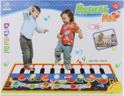 Sjovt og lærerigt musiktæppe til små musikere, der spiller som et klaver og andre musikinstrumenter. Ideelt til at udvikle børns rytme og hørelse. Kompakt størrelse ca. 110 × 36 cm, strømforsyning 3× AA-batterier (medfølger ikke). Velegnet til børn 3+.