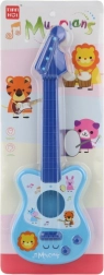 Denne lette og holdbare guitar er et godt valg til små begyndere. Med en størrelse på ca. 11,5 × 38 cm ligger den godt i hånden og understøtter udviklingen af rytme, motorik og kreativitet. Det attraktive blå design fanger børns opmærksomhed og motiverer til leg.