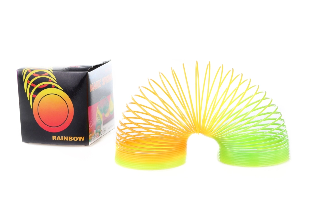 Regnbue-magi-fjederen er et tidløst stykke legetøj, der underholder både små og store. Takket være det elastiske plast bølger den let, springer elegant ned ad trappetrin og giver en afslappende leg samt udvikling af finmotorik.