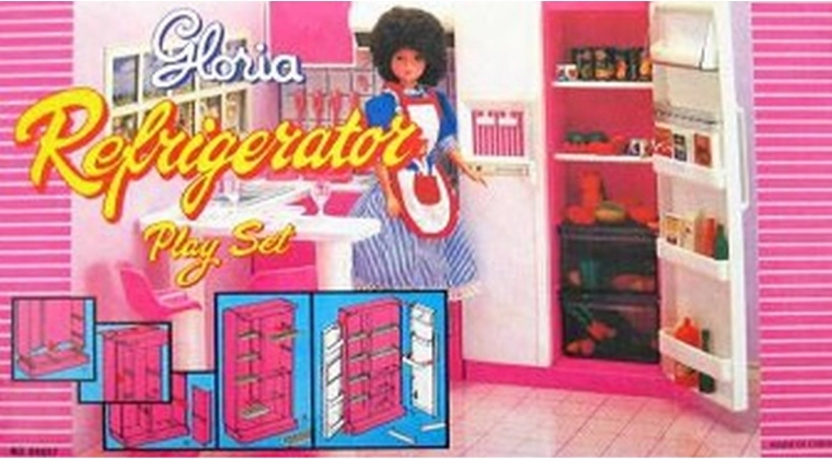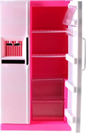 Gloria-køleskabet er designet med realistiske detaljer i hvid-lyserød udførelse, der efterligner et rigtigt apparat, og det indeholder forskellige rum til leg.