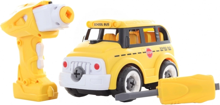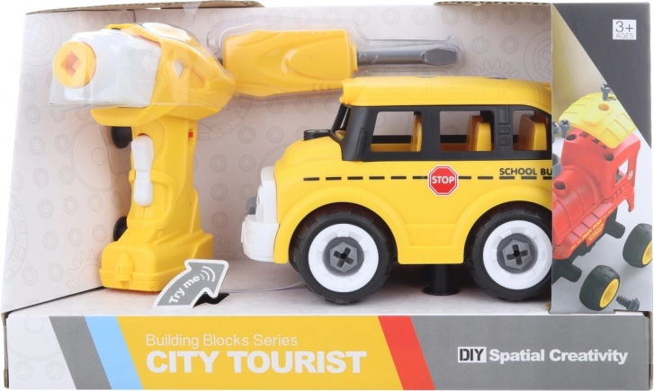 Opdag et smart legetøj, der kombinerer byggesæt og fjernstyring. Børnene skruer først bussen sammen med den medfølgende skruetrækker eller boremaskine. Motoren kan tages ud af boremaskinen, indsættes i bussen, og så er den klar til at køre – styringen er nem både fremad og baglæns.