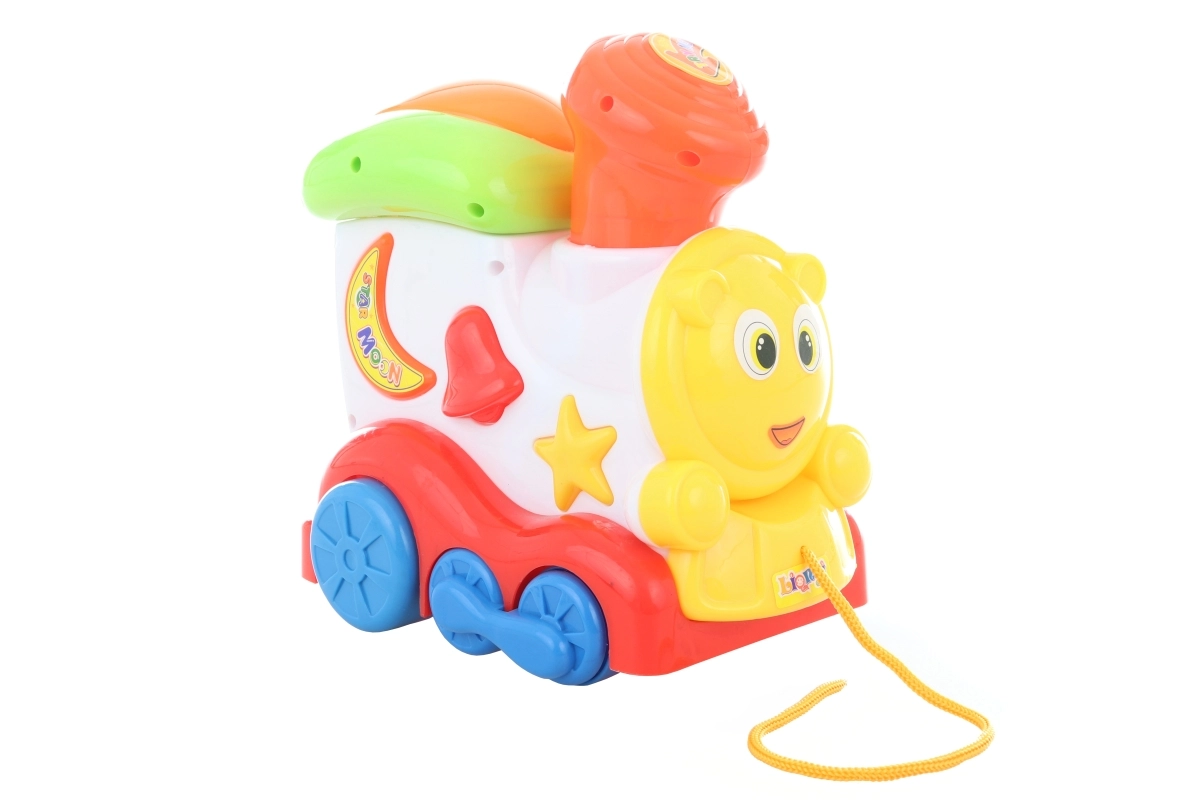 Dette farverige pivelyds-lokomotiv vil glæde ethvert nysgerrigt barn. Ved at trække det efter sig og ved at trykke på skorstenen udsender det en pivelyd, som understøtter sanseopfattelsen og motiverer til bevægelse. Takket være de kompakte mål er det let at håndtere og egner sig til leg både hjemme og på farten.