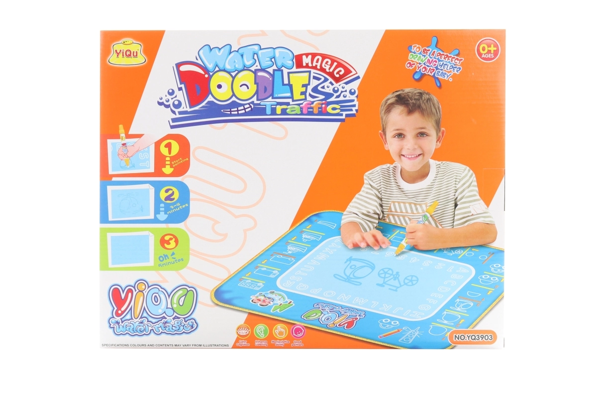 Oplev sjov tegning uden rod med et vandtegnebræt. Fyld den specielle pen med rent vand, og børn kan tegne på den hvide måtte uden pletter. Når vandet tørrer, forsvinder motivet, og legen kan begynde igen. Ideel til at udvikle kreativitet og finmotorik hos børn fra 3 år. Ren vandtegning, genanvendelig, pletfri.