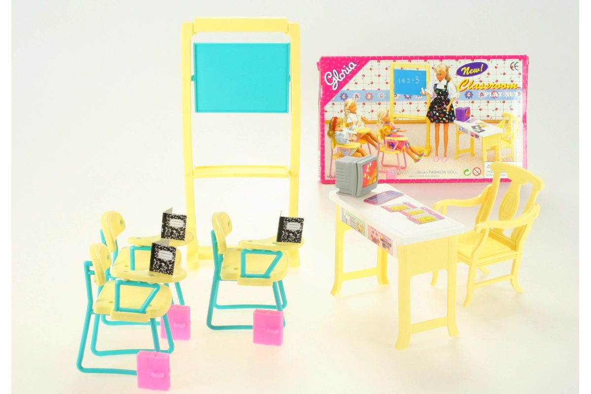 Med Glorie skoleklasse kan ethvert børneværelse forvandles til et lille klasselokale. Børn kan lege både lærer og elever, skrive på tavlen, rette tests og forberede sig til skolen. Det omfattende tilbehør sikrer timevis af sjov og styrker sociale færdigheder.