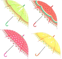 En pålidelig makker i regnvejr for små eventyrere. Den automatiske børneparaply med glade frugtmotiver beskytter mod regn og glæder samtidig med sit legende design. Takket være den solide konstruktion og det komfortable håndtag ligger den godt i børnehånden og er nem for børn at betjene selv.