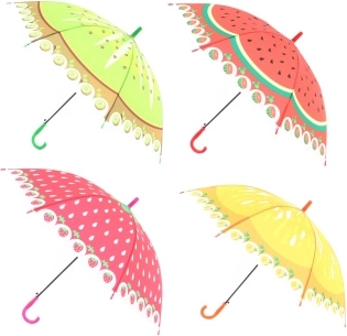 Sød og praktisk børneparaply med frugtmotiver, som er let at åbne takket være den automatiske udløsermekanisme. Den tilbyder en robust stålkonstruktion, et behageligt plastgreb og sikker lukning med trykknap. Ideel til børnehave, skole og udflugter.