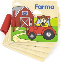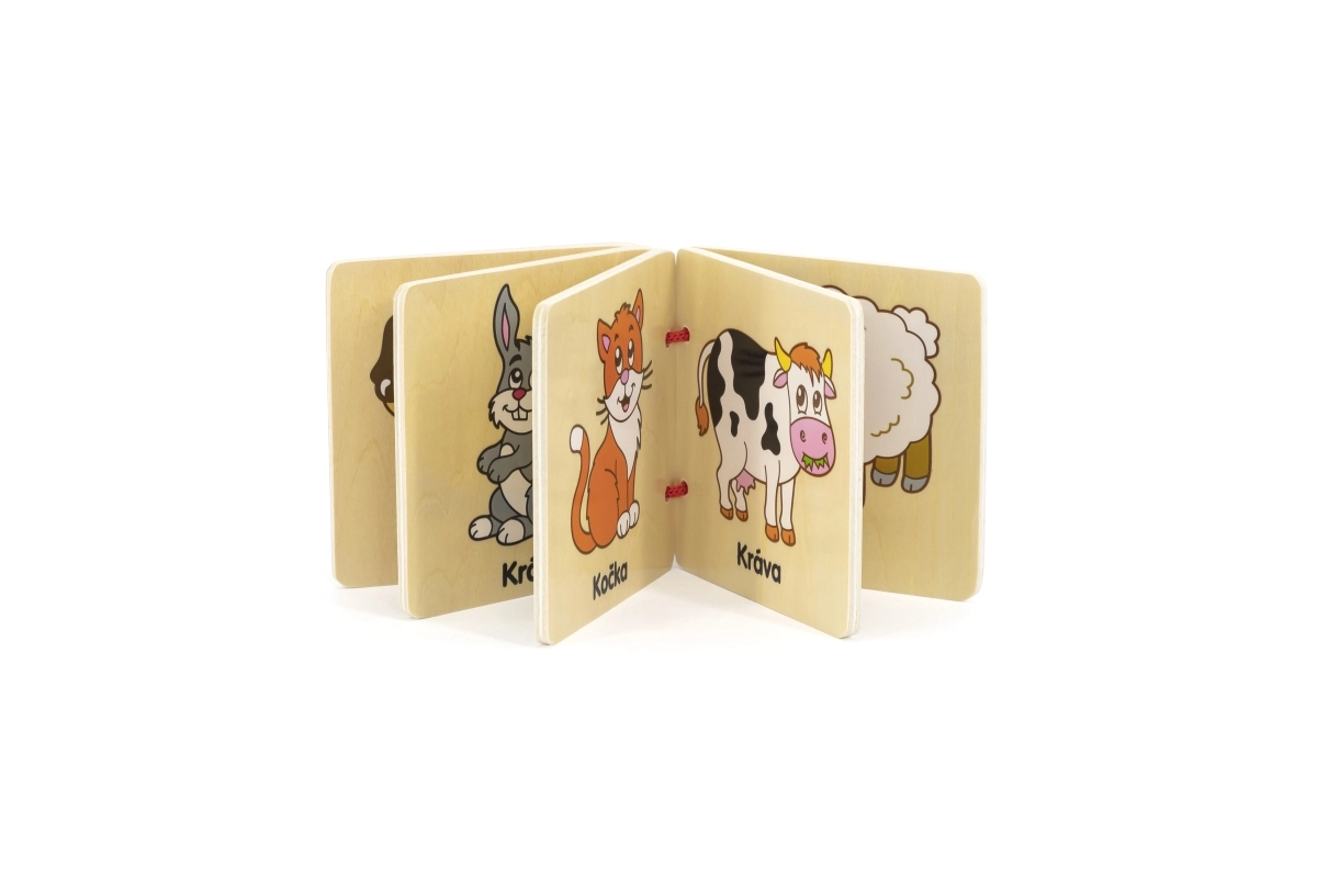 Denne træbog med gårdtema er et fantastisk redskab til børns første møde med dyrenes verden. De holdbare træsider med klare illustrationer og tjekkiske billedtekster hjælper med at udvikle finmotorik, ordforråd og koncentration.