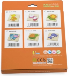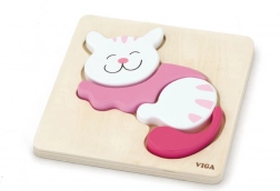 Træ Mini Puslespil fra Viga er designet til at udvikle børns fantasi og motoriske færdigheder. Disse puslespil består af fire farverige stykker, der passer i en fordybning på en træbase. De er lavet af materialer sikre for børn og miljøet og malet med giftfrie farver.