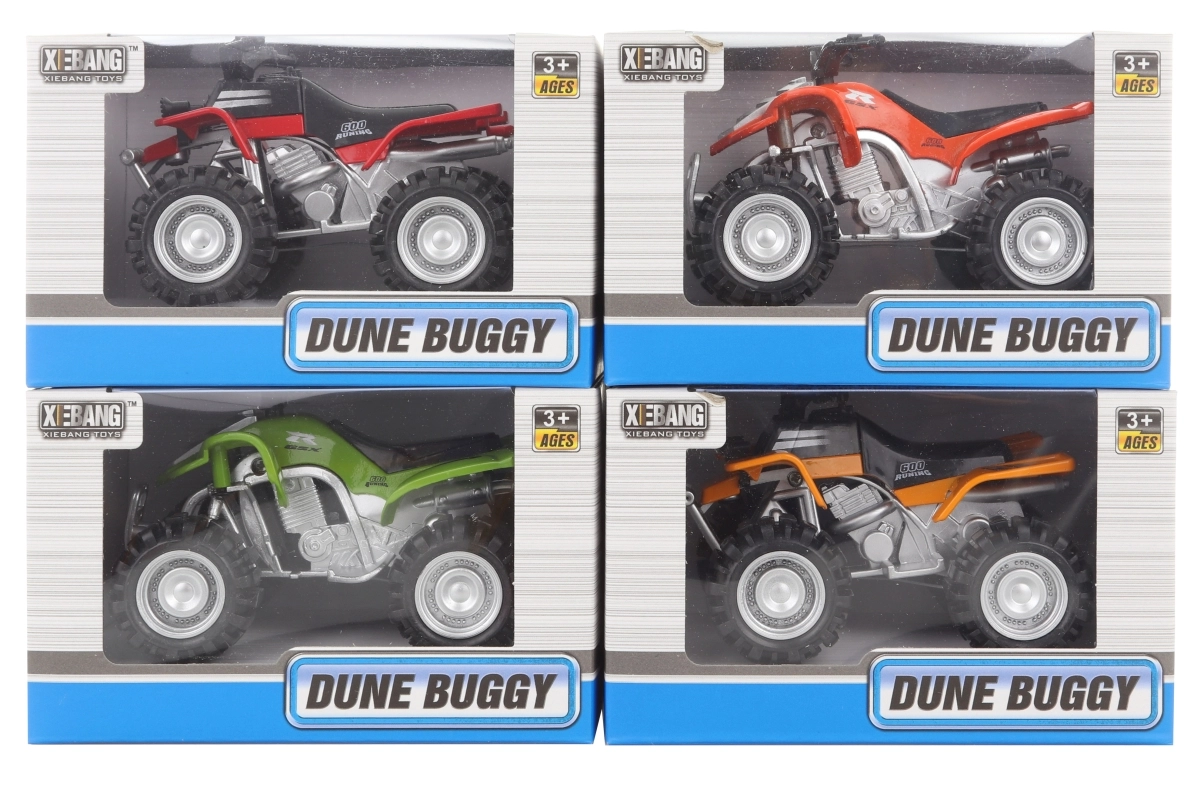 En realistisk firhjulet ATV i metal, der vil glæde små racerkørere fra 3 år. Takket være de kompakte mål ligger den godt i hånden og byder på solidt håndværk til langvarig leg. Metalkarrosseri, detaljeret udførelse og robust konstruktion garanterer fantastisk leg hjemme og på farten.